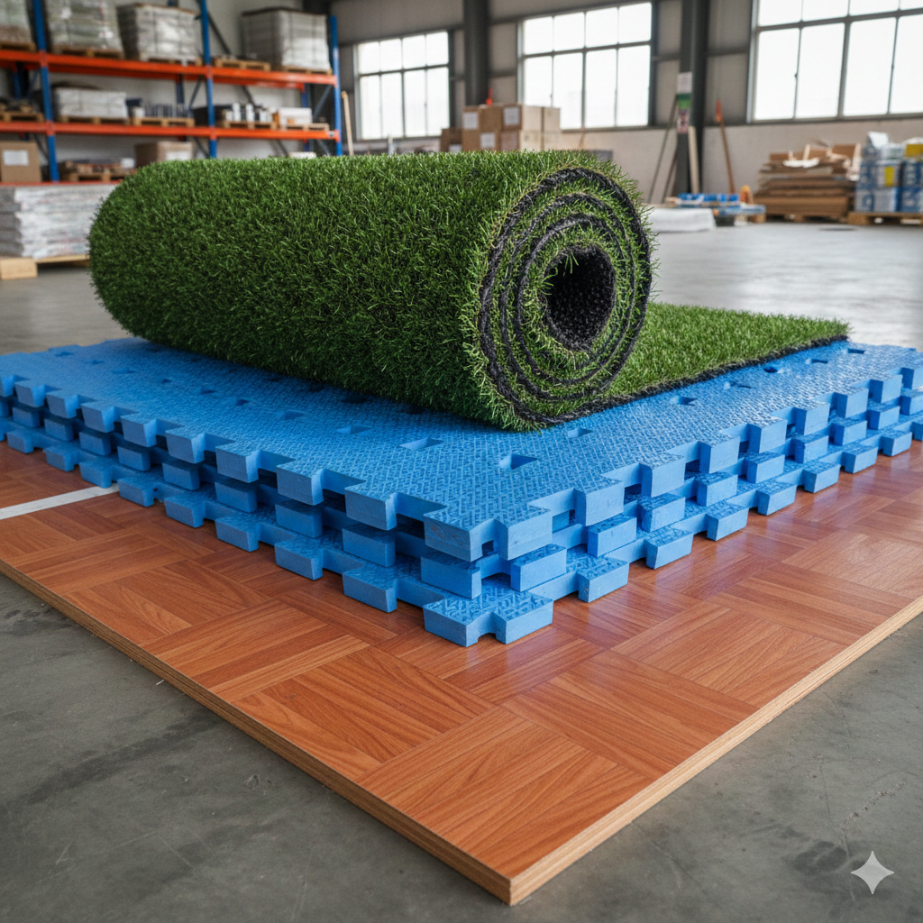 • Jika ada kerusakan, hanya tempat yg rusak di ganti. Beda dengan Rumput Sintetis atau Lantai jenis Vinyl dimana kerusakan biasanya di tambal sulam.